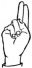 На ћирилици написано УНА ДАБИЋ састоји се из 8 слова [?]. Исписано ћириличном једноручном азбуком за глувонеме: